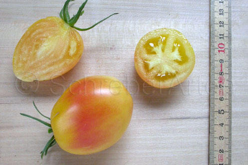 Jaz tomatofestu že odzdavnaj ne zaupam več, vsaj kar se natančne zgodovine, imen in opisov tiče, sploh pa so oni v opisu samem napisali, da gre za beli paradižnik: